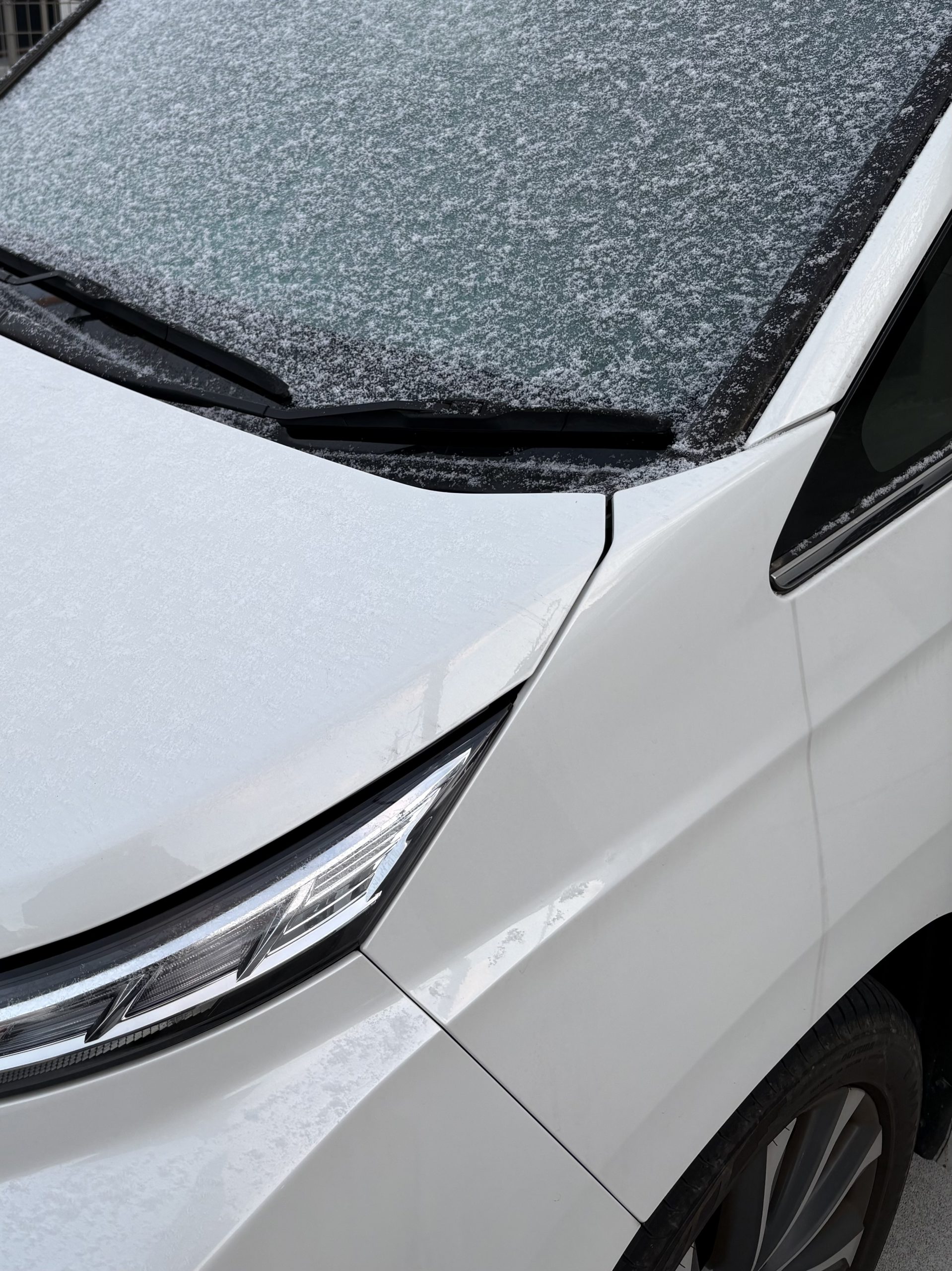 今朝、出勤しようと自宅を出ると車に薄っすら雪が…