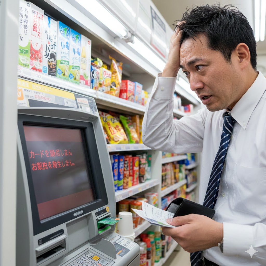 嫌な予感がしましたが、きっとセブンのATMの調子が悪いのだと店を出て向かいの滋賀銀行のATMへ行きキャッシュカードを差し込みました。